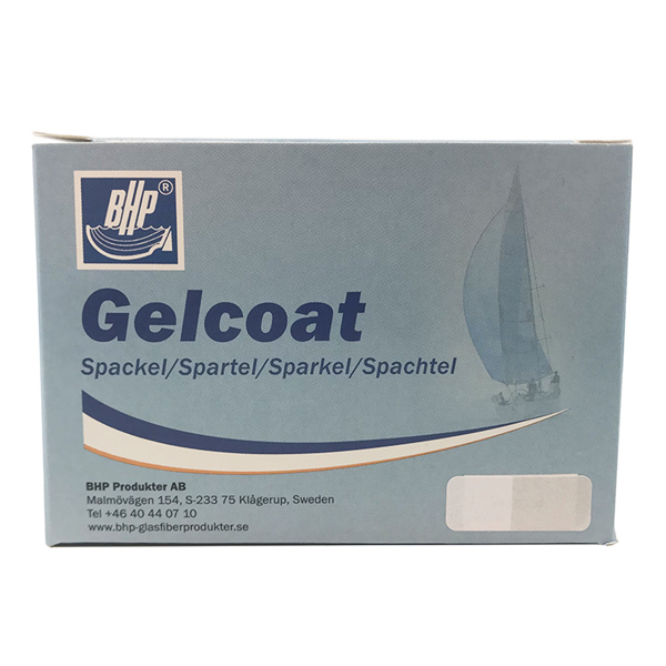 Gelcoat spartelmasse findes i ca. 30 farver og passer til de mest almindelige både på markedet. Produktet er beregnet til reparation af mindre skader i overfladen på skrog og dæk. Slutresultatet er en nærmest usynlig reparation i den korrekte farve. Spartelmassen er en specielt tyktflydende type, som gør, at den ikke løber ud. Det er således muligt at reparere vertikale overflader uden at sætte tape over det beskadigede sted. Spartelmassen er pakket i en 100 g dåse, hvori hærder 7 g der er incl. iblandes, og processen starter.