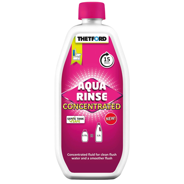Aqua Rinse koncentrat fra Thetford, er meget effektivt. Væsken er dobbelt koncentreret og har en frisk duft af lavendel som sørger for at vandbeholderen på dit transportable toilet eller kassettetoilet dufter godt.